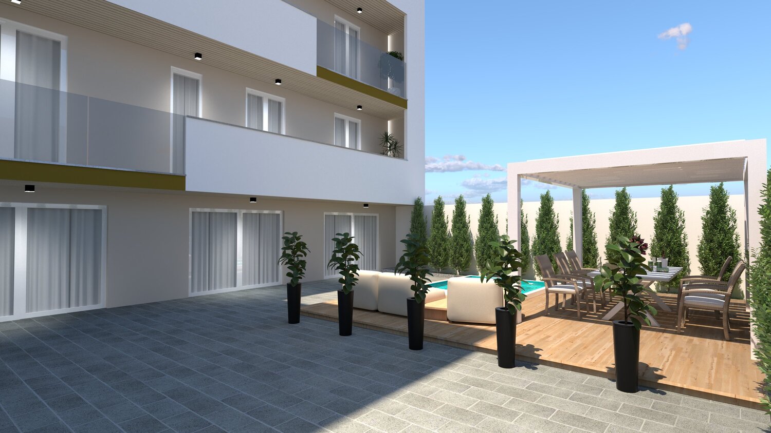 Il complesso “Residenze Via Prati”, situato a Giugliano in Campania (NA) in Via Prati, è composto da 18 unità immobiliari, suddivise in due scale e distribuite su piano rialzato, primo piano e secondo piano. Il piano interrato è stato destinato ad area parcheggio, con box auto assegnati alle singole unità.